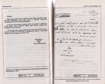 Belgenin altında imza bölümünde, “Hürmetkarınız Weizman, Reis – Filistin Yahudi Ajanlığı” yazılı. En alta düşülen notta ise “Mektubun aslı ve ilişiği Hariciye Bakanlığı Hususi Kalem Müdürü Şadi Kador’a gönderilmiştir. 24.1.1945.” Belge no olarak ise “030.10.110.736.16” yazılı. Belgede ismi geçen Weizman ise, İsrail’in ilk devlet başkanı olan Chaim Weizman.