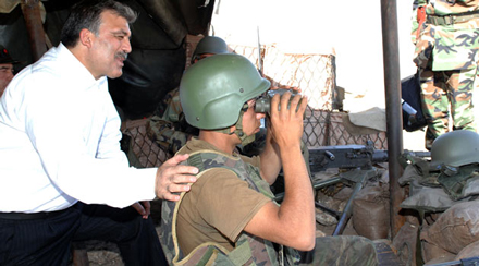 Abdullah Gül sınır bölgesindeki birliklerde inceleme yapıyor.