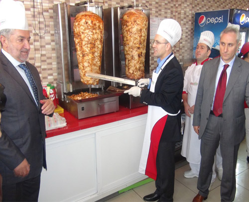 Kongredeki konuşmasının ardından Batman’da yemek sektöründe hizmet verecek olan Bereket Döner’in açılışını gerçekleştiren Bakan Şimşek, aşçı önlüğü giyip dönerin başına geçti. Burada bıçağı alarak döner kesen Bakan Şimşek, personelle hatıra fotoğrafı çektirip, yemek salonunda bulunan masaları gezip vatandaşlar sohbet etti.