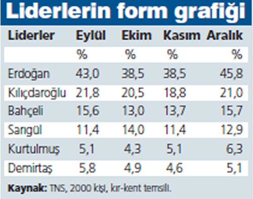 TNS tarafından yapılan liderlerin form grafiği araştırmasının aralık ayı sonuçları geldi.
