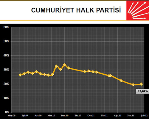 SONAR'ın Şubat 2012 Siyasal Eğilimler Araştırmasında partilerin son oranlarında ciddi oranda değişiklikler gözlenmezken son dönemlerdeki kurultay tartışmaları ile gündeme gelen CHP'de yaşanan periyodik düşüş ise dikkat çekti.