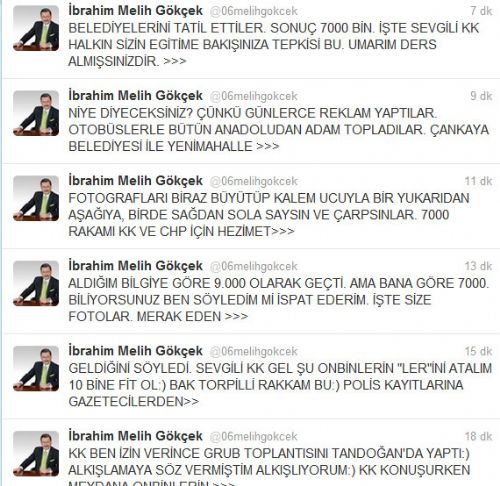 Gökçek, twitterdan yaptığı açıklamada mitinge katılanların sayısının 7 bin kişi olduğunu ileri sürerek, "Aldığım bilgiye göre 9000 olarak geçti. Ama bana göre 7000. Biliyorsunuz ben söyledimmi ispat ederim. İşte size fotolar diyerek" havadan çekilen miting fotoğraflarını yayınladı.