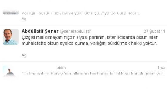 Türkiye Partisi Genel Başkanı Abdüllatif Şener, 27 Şubat 2011 tarihinde attığı tivitte bakın ne demişti...