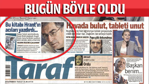 “Bu kitabı Hrant’ın acıları yazdırdı” başlıkla sözde haberde Taraf, şöyle yazdı: