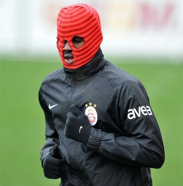 Bursaspor hazırlıklarını sürdüren Galatasaray'da Eboue idmana kar maskesiyle çıktı.