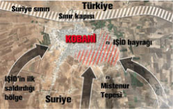 Kobani sokaklarında olduklarını belirttikleri görüntüleri kendi çizdikleri bir “işgal” haritasıyla birlikte yayınlayan IŞİD militanları dün bu bilgiler ışığında ABD ve koalisyon uçakları tarafından vuruldu, YPG ilk kez saldırıya geçti.