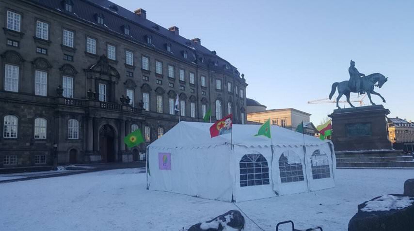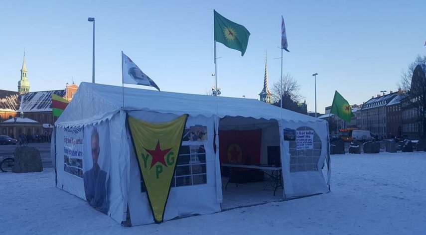 Ülkede, Meclis binası önüne çadır kuran PKK sempatizanları, terör örgütünü simgeleyen sözde bayrakları çadıra astı. Danimarkalı yetkililer ise terör örgütü propagandasının yapılmasına göz yumdu.